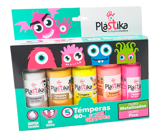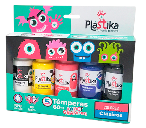 Las Témperas Plastika son distintas a todo lo que conocés: los colores son llamativos y perdurables (como nuestros acrílicos), son suaves, lavables y ecológicas. Pero lo más importante es que las diseñamos especialmente para la infancia porque utilizamos conservantes de la industria cosmética. Pintar con pincel o con las manos debe ser un placer creativo y no un problema.